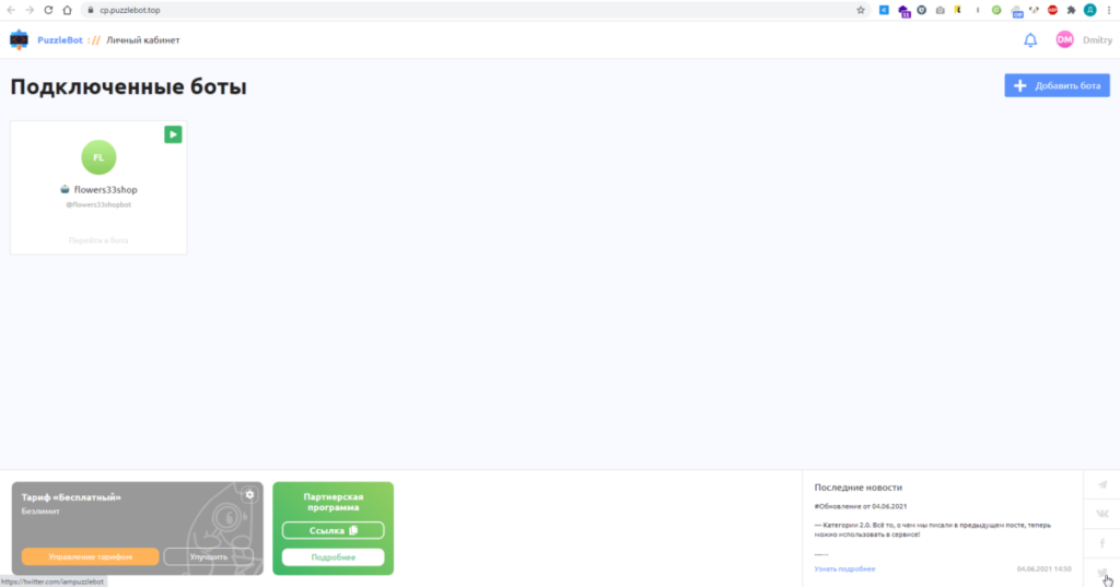 Рассмотрим создание магазина в Telegram на примере PuzzleBot с условно бесплатным тарифом