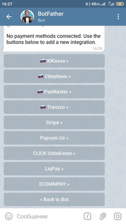 Откроется панель управления ботом, в ней, выберите настройку платежных систем Payments.
