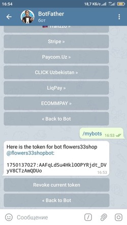 Если отправлены данные верные, бот подтвердит успешную привязку, создаст боевой платежный токен, который вам необходимо будет сохранить и использовать в дальней настройке любого бот магазина.