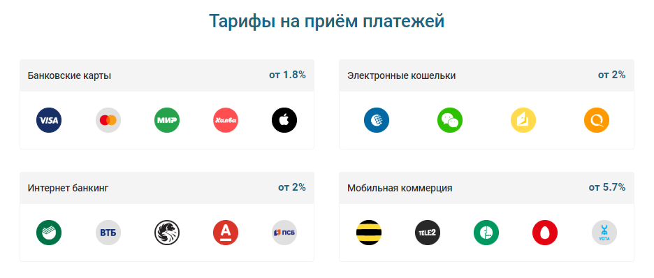 PayMaster предлагает интернет-эквайринг и другие способы оплаты по следующим тарифам: