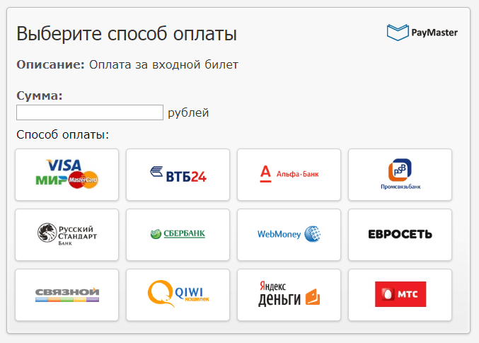 - Один договор на все виды оплаты. PayMaster предлагает самые популярные методы оплаты с заключением всего одного договора. Наша компания не стоит на месте, мы постоянно работаем над расширением перечня способов оплаты и бесплатно внедряем их в действующие интерфейсы оплаты на сайтах наших клиентов.