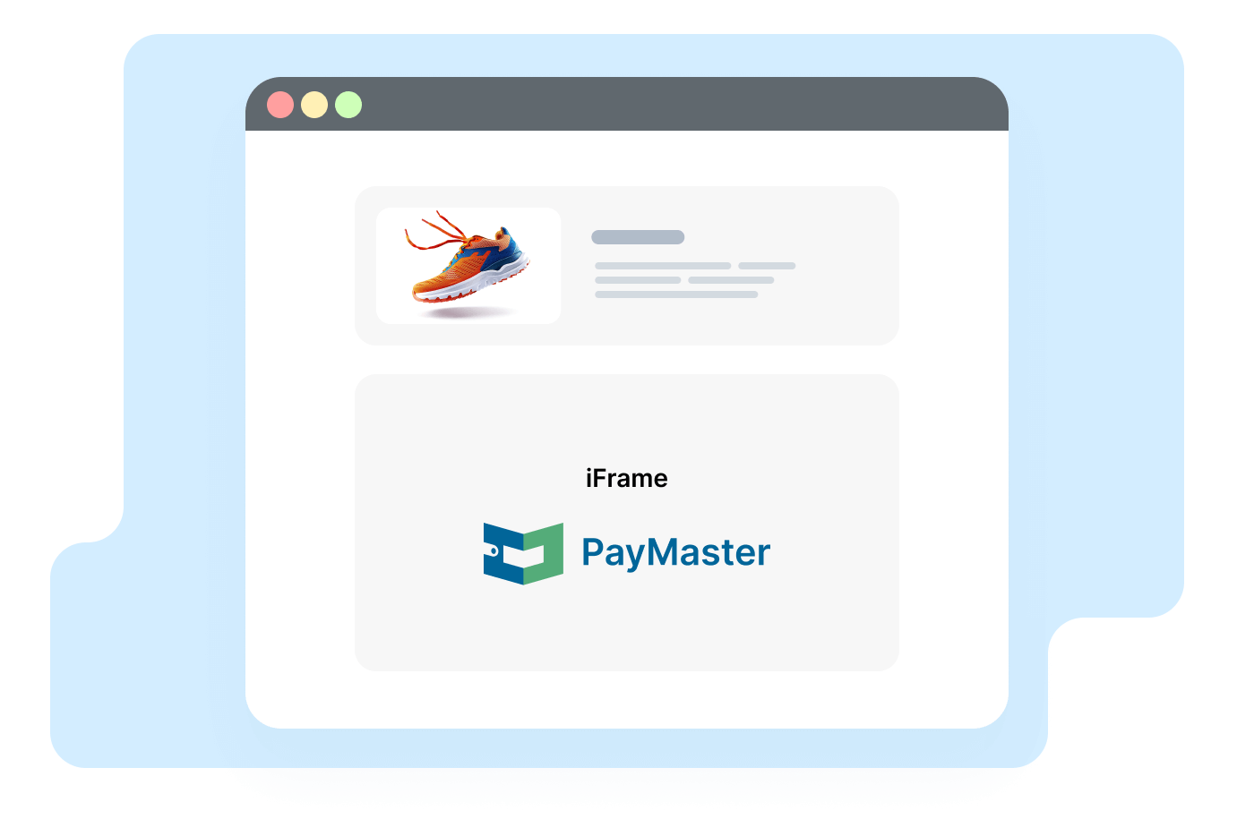 Платежная форма встроена непосредственно на страницу вашего сайта. Покупатель может произвести оплату без перехода на внешний сервис PayMaster.