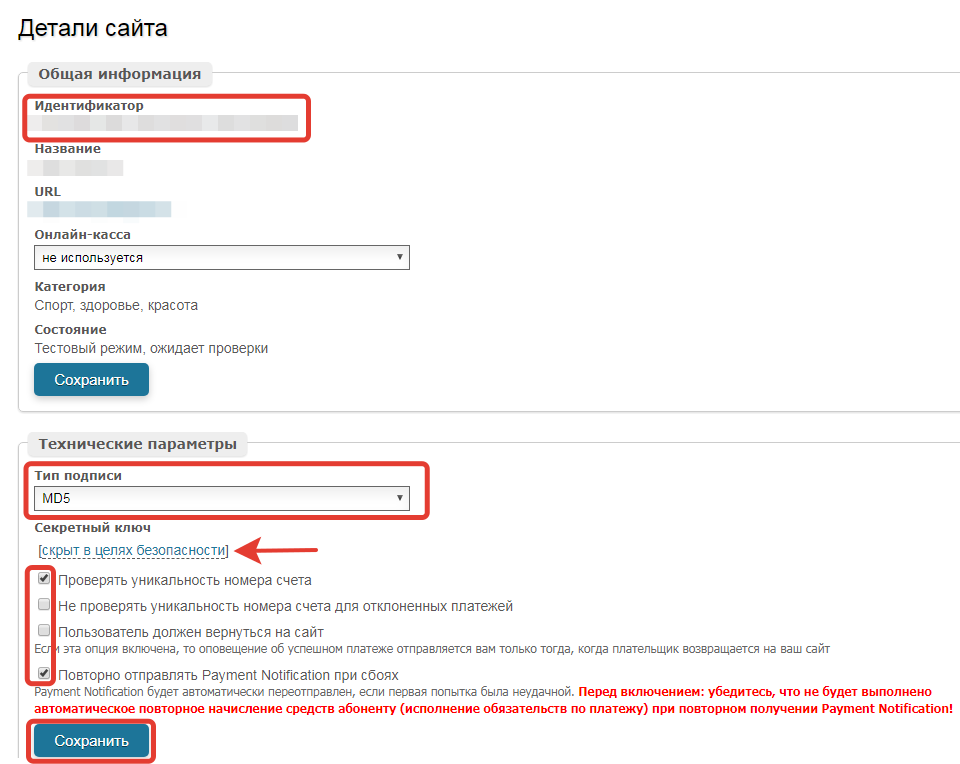 - Секретный ключ — укажите секретный ключ (секретное слово), которое будет использоваться при генерации ключа проверки, подтверждающего, что данные о поступление платежа пришли от платежной системы «PayMaster»;