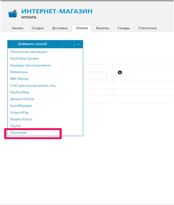 5.2.Тип оплаты: из выпадающего списка необходимо выбрать Paymaster,