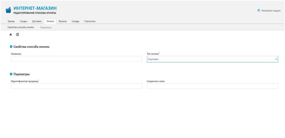 Необходимо произвести настройки в личном кабинете PayMaster:
